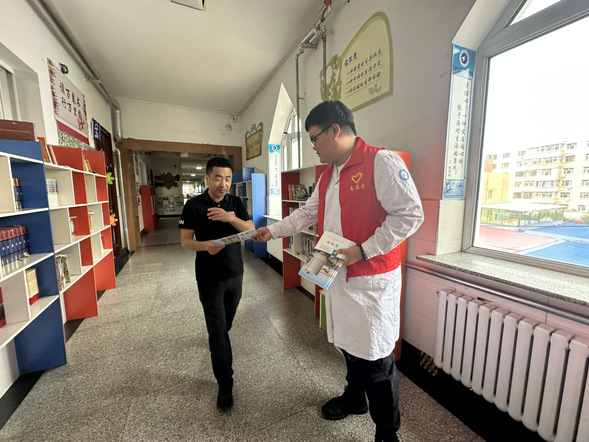 为深入贯彻落实党的二十届三中全会精神,以实际行动庆祝新中国成立75周年,切实保障人民群众身体健康,9月12日下午,在中秋节即将来临之际,我院团委积极响应学院号召,组织医院专家团队,学院团委书记刘柏人带领专家团队走进回民小学,开展“学习贯彻全会精神 喜迎祖国75华诞”义诊活动,为老师和同学们送去一份“健康礼”。参加此次义诊的专家有我院心血管内科五病房主任医师张鸿雁、神经内六科副主任医师张晨昕、血管外科副主任医师赵明宇、口腔科主治医师杨慧以及附属一院、附属二院的医疗专家。附属一院、附属二院、附属三院团委书记及宣传科人员来到义诊现场。