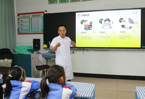 活动中,康复医学科副主任王宏宇、中医科副主任张伟耐心地为前来咨询的教师问诊把脉,并给予专业诊断和建议。眼科张志长副主任医师走进班级,为小学生们宣讲爱眼护眼知识,取得了良好的宣传教育效果。