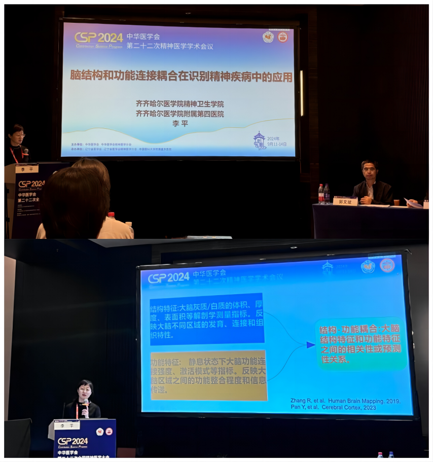 中华医学会第二十二次全国精神医学大会由中华医学会和中华医学会精神医学分会主办,来自全国6000余名专家学者参加了本次盛会。精神卫生学院院长李平教授应邀在会上以“脑结构和功能连接耦合在识别精神疾病中的应用”为题目作专题报告,详细介绍了科研团队在精神疾病神经影像学方面的研究工作,汇报内容引起了相关科研工作者浓厚兴趣。精神卫生学院副院长孙正海副教授在老年学组作学术专题讲座,他围绕“阿尔茨海默病生物标志物在临床应用中的发展机遇与面临的挑战”主题,与国内老年精神医学领域的专家共同进行了深入交流讨论。