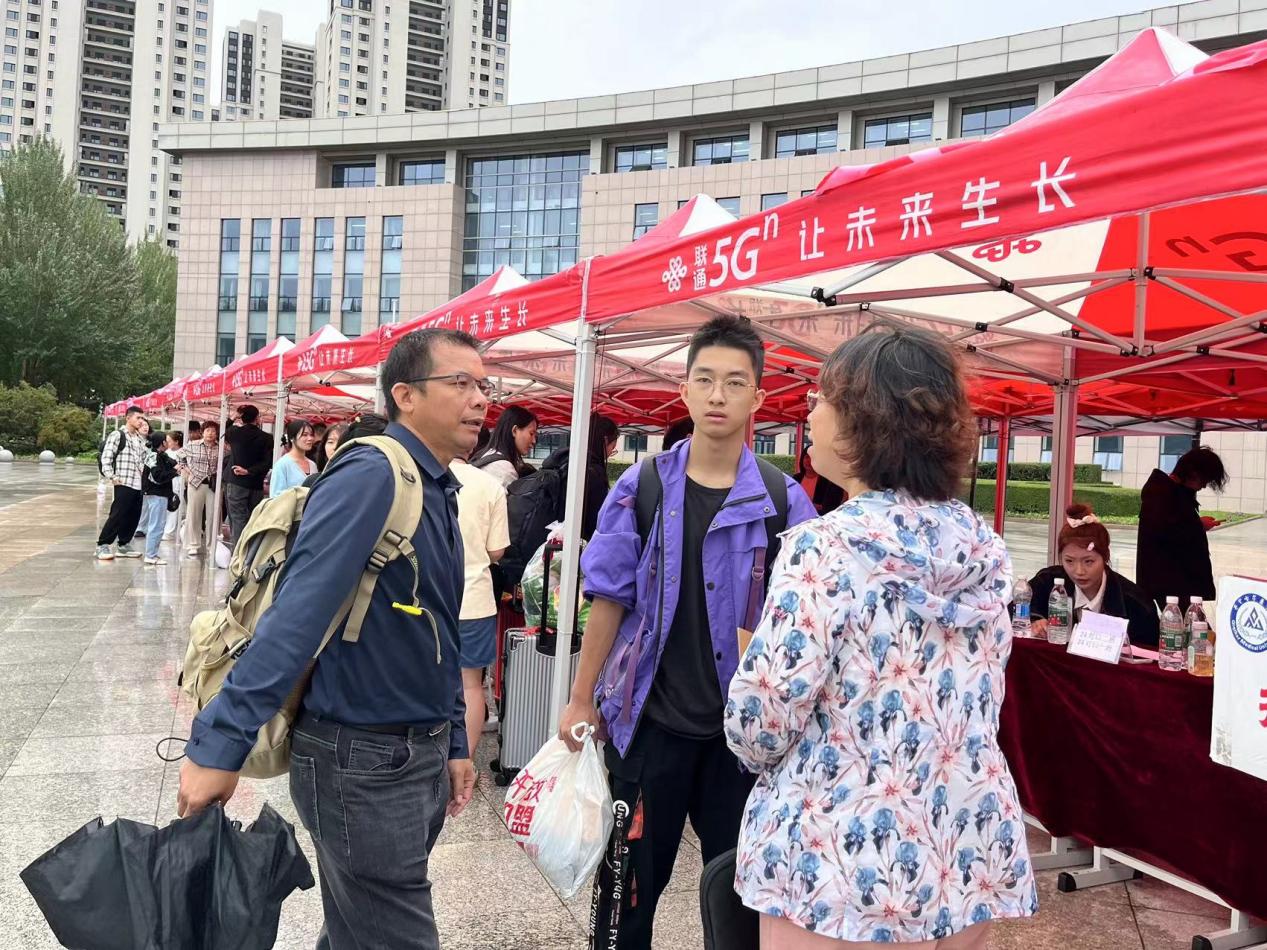 学生干部和志愿者在校门口设置迎新举牌接待,他们积极主动、热情周到的组织引导新生和家长前往报到处,一路帮助新同学和家长拿行李,为他们答疑解惑。工作人员悉心地将一卡通、钥匙、体检袋发放到新生手中,实时更新报到情况,新生同学顺利有序完成信息采集、缴费、身份认证、白服领取等相关事务,得到了新生和家长的一致好评。