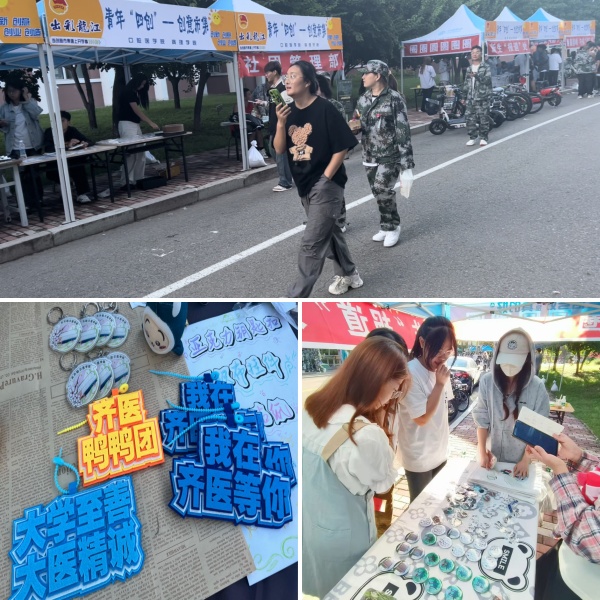 当开学季遇上创意市集,当创意创造与社会实践撞了个满怀,当“学长小老板”与“新生小可爱”们相遇,贩卖的不仅是创意精致的好物,更是对齐医浓浓的热爱。本次创意市集8个二级学院和学生社团共组建了34个摊位,产品包含文创纪念类、首饰类、装饰品类、娱乐类等56种,产品总数4000余件,原创商品包含齐医校训、齐医精神定制挂件、u盘、帆布背包等,校园内珍奇植物、特有风光与标志性建筑物手绘定制明信片、书签、卡套等,受到了同学们的广泛欢迎,售出商品占比八成以上。