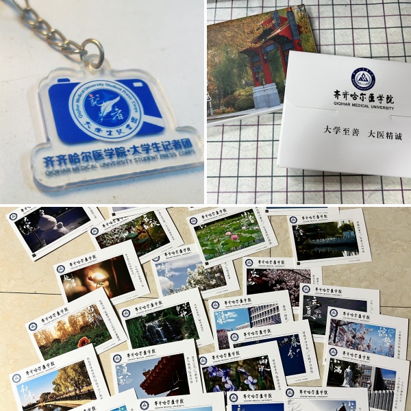 大学生记者团展出的齐医二十四节气定制明信片和记者团挂件也受到了同学们的喜爱。二十四节气作为中华民族的文化瑰宝,从“春雨惊春清谷天”到“冬雪雪冬小大寒”,每一张影像都是记者团学生用相机捕捉到的精彩画面,并匠心独运地将齐医美景与四季更迭相结合,不仅让同学们感受到二十四节气所蕴含的智慧和大自然的奇妙变化,也让一幕幕校园美景刻入脑海,每一个画面仿佛都诉说着校园与自然的故事。大学生记者团挂件,则是学生社团团队精神的象征,走心而精致的设计,代表着他们的活力、创新与团结,记者团成员表示,“希望同学们看到挂件就能想起我们这个积极向上、充满创造力的团体,希望我们可以带给大家力量”。