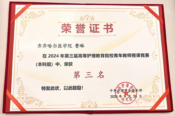 9月20日,由中华护理学会主办的全国“第三届高等护理教育院校青年教师授课竞赛”在厦门举行。学校护理学院教师曹琳以《营养性缺铁性贫血》为题,凭借扎实的教学能力和创新的教学设计获得本科组第三名。