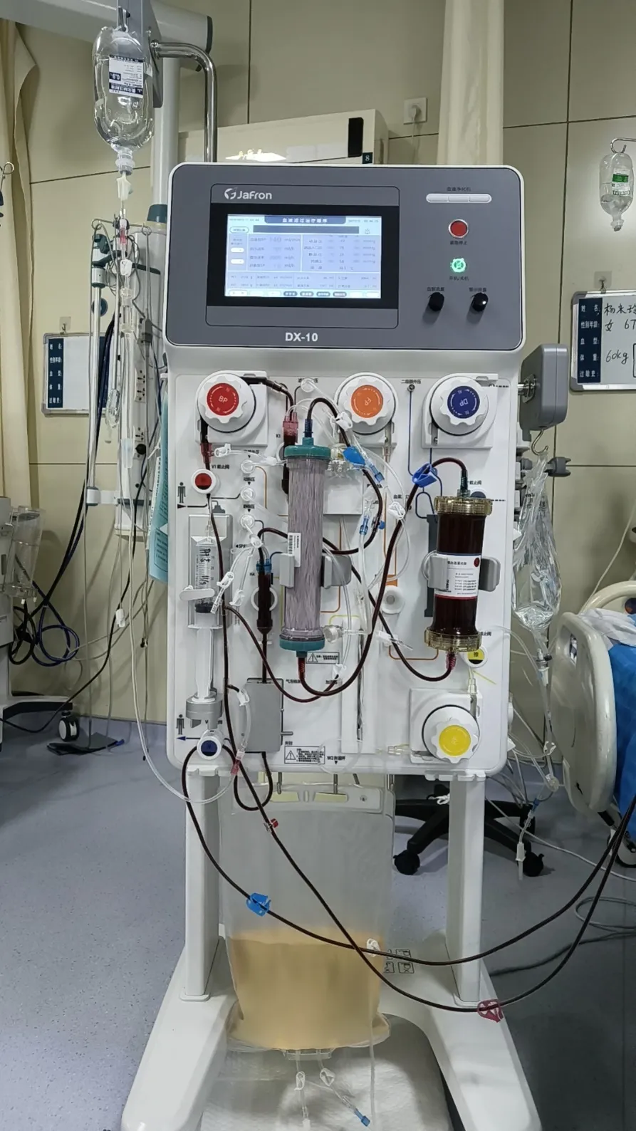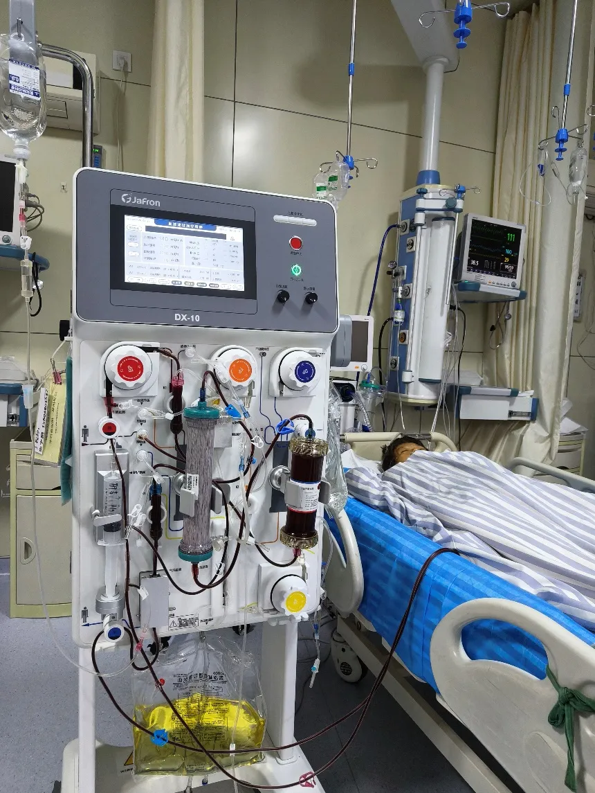 经检查,患者属于多脏器功能衰竭,肝脏、肾脏、凝血、循环等系统表现尤为明显,同时存在意识状态改变,一旦得不到及时有效的救治,预后将是非常差的,治疗方案中尽快清除毒物是抢救成功的重中之重。在这如此严峻的时刻,重症医学科主任孟宪国指出,由于患者进食毒素后导致多个器官功能出现衰竭,残存毒素继续损害机体器官,同时体内大量炎症细胞激活,免疫调控失衡,过量分泌的炎症因子进一步对身体各个器官和机能造成巨大的损伤。结合患者病情,在进行有效液体复苏状态下,目前有效的治疗手段就是血液灌流治疗,这样可以迅速且有效清除体内的有毒物质。在与家属沟通并达成一致意见后,重症医学科团队立即采用“血液滤过联合血液灌流”来清除患者体内毒素。