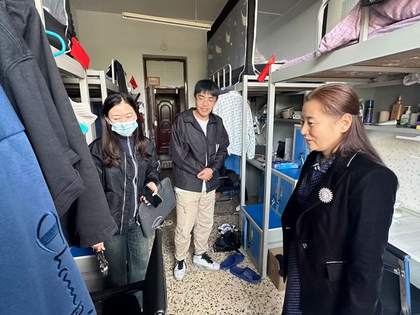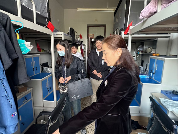 查寝过程中,白丽副院长强调,安全无小事,我们要不断强化安全意识,筑牢安全防线。此次重点检查了宿舍的卫生状况、用电安全以及是否存在违规物品等问题,同时还与学生进行了亲切交流,了解学生的生活和学习情况。
