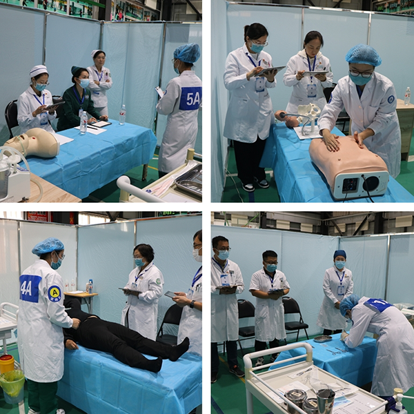 本届竞赛围绕理论、临床思维能力和技能操作三部分进行。技能操作共设16站22个项目,内容涉及内、外、妇、儿、神经、急救和护理等,覆盖面广,病例选取紧贴临床实际,模拟临床真实情景,兼顾操作速度和质量,充分考查学生临床思维、技能操作、应变与团队协作能力。竞赛运用现场直播与专家点评等形式,既保证了竞赛的公开公正,又方便了广大师生观摩学习。比赛中,各参赛队伍精诚协作、沉着应战,充分展现了齐医学子的风采。