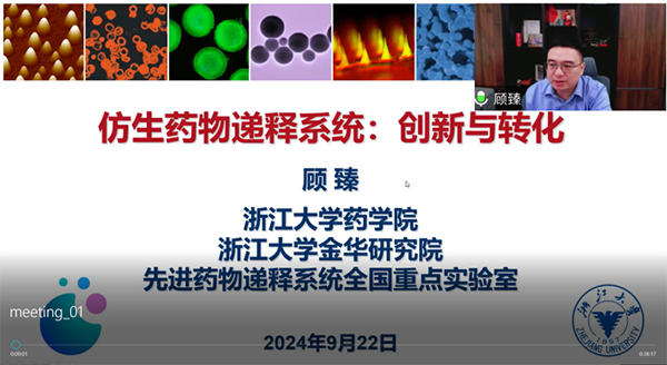 顾臻教授以《先进药物递释系统:创新与转化》为题,对基于仿生策略的精准制剂研发进行了介绍。他结合糖尿病、肿瘤治疗等应用需求,阐述了研发平台科研成果,以细胞“海绵”支架局部缓控释细胞药物、基于脂肪细胞脂滴的药物储库、血糖响应性胰岛素及胰岛素递释系统等案例,为现场师生展示了药物递释系统与其他学科交叉融合的探索成果及应用情况。