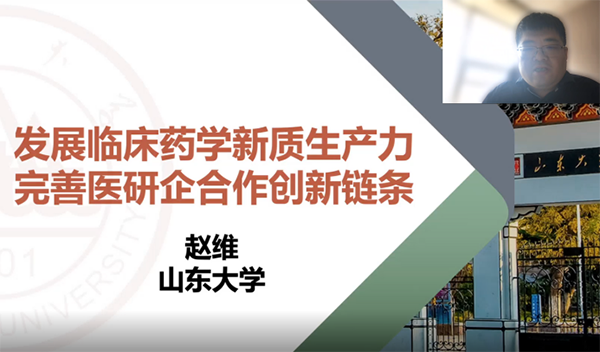 赵维教授以《发展临床药学新质生产力,完善医研企合作创新链条》为题,聚焦创新转化以及医院临床药学学科发展的前沿问题,分享了以临床价值为导向的创新药临床评价以及秉持个体化治疗理念的发展历程。他从学科建设和专业发展的视角出发,强调了创新药研发的迫切需求,并以3CL蛋白酶的抗新冠病毒创新药物研制、白血病个体化治疗方案的制定为例,系统讲述了研究型病房建设标准的制定,突出了政产学研用对临床药学学科发展的促进作用。