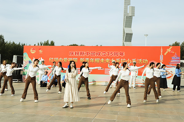 学生参加全市共青团组织的迎国庆主题活动