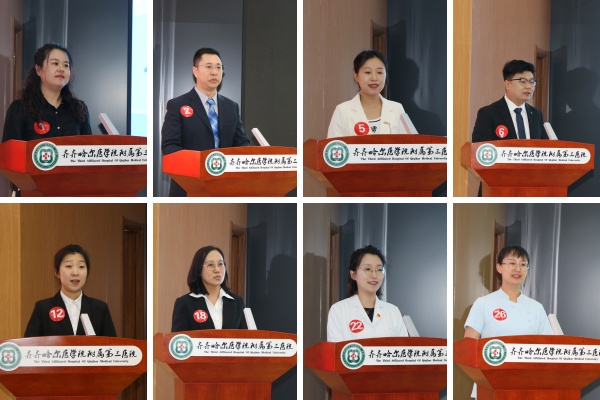竞赛邀请各附属医院医疗及管理专家担任评委,同时,特别邀请齐齐哈尔市融媒体中心综合广播副主任、《新闻110》《民情热线》节目主持人语晗担任评委嘉宾,使竞赛更加客观公正。经过前期各附属医院组织的院级初赛选拔,共有来自附属第一、第二、第三、第五、第八、第九、第十一医院的31位选手进入了校级决赛。