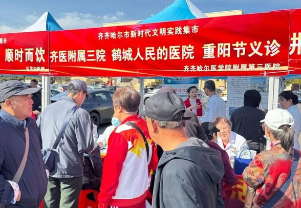 为传承和弘扬中华民族传统美德,在九九重阳节即将来临之际,由中共齐齐哈尔市委宣传部(市文明办)主办的“我们的节日·重阳”敬老爱老新时代文明实践集市于9月27日上午正式开集,我院受邀参加活动,并在现场设立“齐医附属三院 鹤城人民的医院 重阳节义诊”展位,医疗合作办公室和宣传科积极组织国家级、省级等重点专科知名专家参加义诊活动,让广大鹤城百姓在家门口就能享受优质医疗服务。