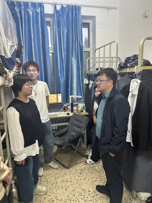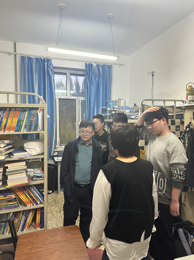 沈焕泉副书记带领辅导员前往学生宿舍进行走访。在走访中查看了学生的住宿环境,并对安全隐患逐项排查,叮嘱同学们要进一步加强安全意识,养成良好的生活习惯,保持寝室卫生,营造良好的寝室氛围。