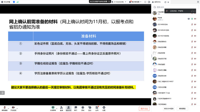 芦继苇同学从报名时间及报名点公告、报名流程、网上确认及准备材料的注意事项详细讲解,对报名过程中容易出现的错误一一做了说明,并向同学介绍了自己考研复习经验。最后芦继苇同学现场详细解答了同学们的问题。