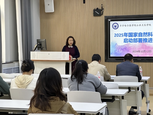 10月12日上午,公共卫生学院2025年国家自然科学基金申报启动部署推进会在部系楼A-B101教室召开,学院特邀医学技术学院贾迪教授作国自然经验交流分享,公共卫生学院领导班子及全体教师参加会议。会议由公共卫生学院副院长白丽主持。