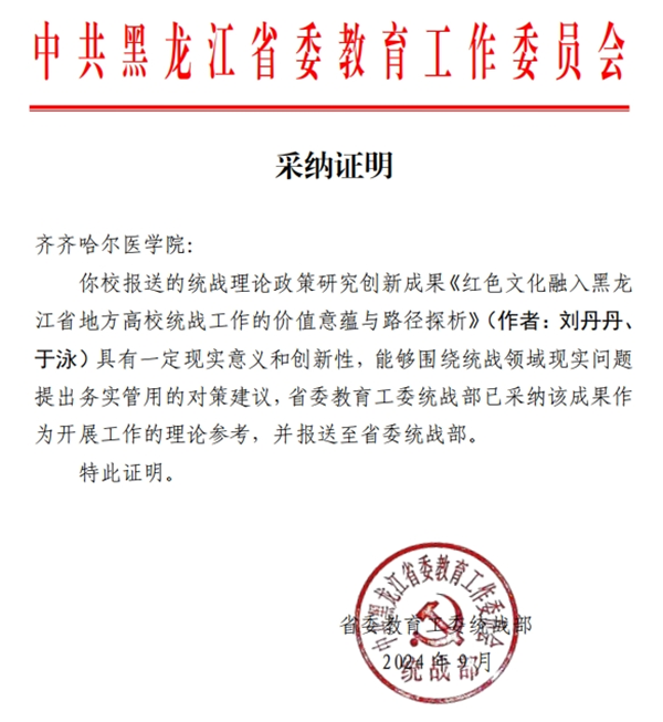 近日,省委教育工委开展了全省统战理论政策研究成果申报和评选工作,学院遴选上报的《红色文化融入黑龙江省地方高校统战工作的价值意蕴与路径探析》被省委教育工委采纳,并推荐报送省委统战部。