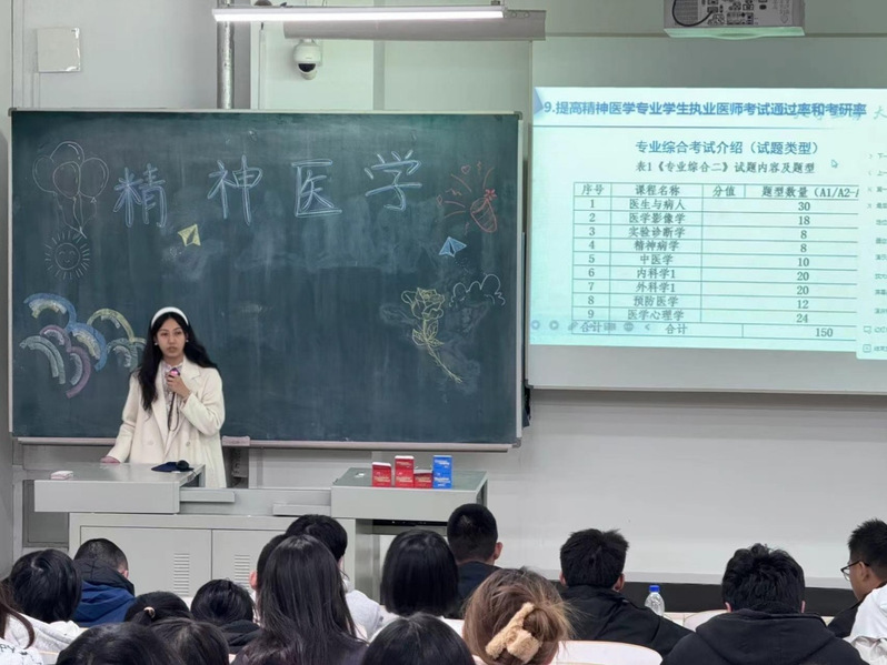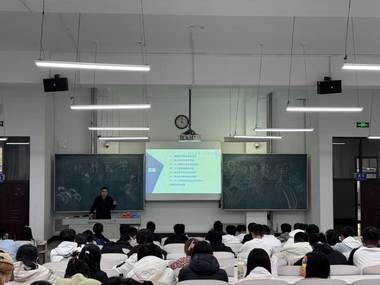 在精神医学专业会场,孙院长不仅介绍了精神医学专业的办学历程、基本情况、专业定位与培养目标、人才培养方案与课程体系,还详细介绍了专业办学特色、历届毕业生就业情况和职业发展情况,并详细讲解了执业医师考试的相关要求和重点,他鼓励同学们要合理规划学业发展,要利用有利条件积极参与科研活动和社会实践,努力成长为德智体全面发展的精神医学人才。