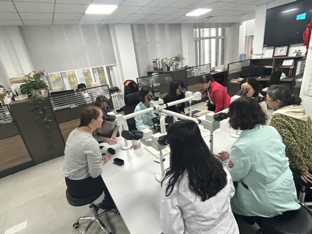 此外,俄方教师还参观了临床病理诊断中心技术室、诊断室及远程会诊室,与中心专家共同探讨远程会诊的操作细节,并在中心专家带领下,通过十人共览显微镜进行切片的分析与交流。