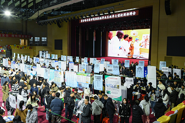为深入学习贯彻党的二十大、二十届三中全会精神和习近平总书记视察我省期间的重要讲话重要指示精神,10月20日,学院在体育馆及教学主楼北区教室举办了“齐齐哈尔医学院2025届毕业生秋季大型校园招聘会”。招聘会突出就业优先导向,抢抓金秋十月招聘季,落实省教育厅2025届高校毕业生就业工作启动会暨组织“金秋招聘月 万企进校园”4个1系列招聘活动的工作部署。此次招聘会包括上午主会场大型校园招聘会和下午留省专场招聘宣讲会。
