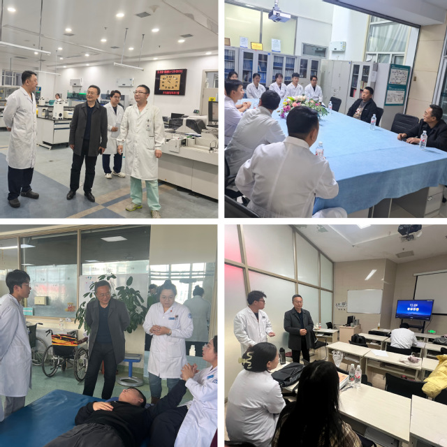 检查走访中,与科室主任、教务科人员、带教教师以及实习学生进行了深入交流,感谢各实习基地为我院学生提供实习机会,以及对学生的生活、学习中的细心照顾和悉心指导。走访了各实习基地的检验科、影像科、康复治疗中心等,听取了各实习科室对实习生培养计划以及日常管理的意见和建议,了解实习生的学习和生活情况,通过与实习生亲切交谈,指导他们进一步做好实习工作,鼓励他们充分把握好机会,努力提高自身的实践能力,为今后的就业和更好发展奠定坚实的基础。检查结束时,张浩院长对实习生提出了几点要求和希望:一要珍惜实习机会,服从基地管理;二要严格考勤制度,遵守实习纪律;三要主动向指导老师请教,虚心学习专业知识;四要强化安全意识,圆满完成实习工作。