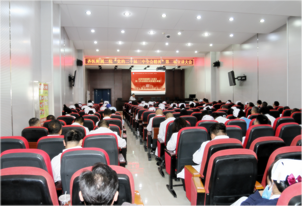 10月17日下午,齐医附属二院在临床技能中心一楼多功能厅举办第二场“党的二十届三中全会精神”宣讲大会,党委副书记、院长武立刚以《全面准确理解<决定> ,进一步全面深化改革重大举措》为题作主题宣讲,党委书记丁国旭等全体领导班子成员及中层干部200余人聆听讲座。