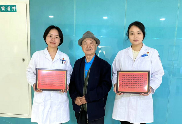 患者于大爷与刘洋主任、梁咏涵医生亲切合影