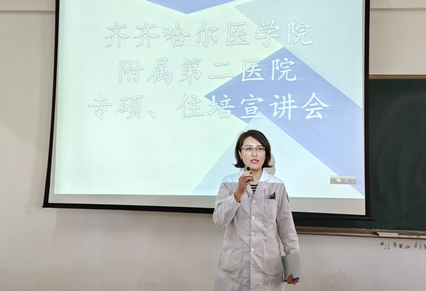会上,岳波主任对齐医附属二院研究生招生政策和住培招生政策进行了说明,介绍了医院基本情况、当前发展形势、“住培”基地建设及培训开展情况,鼓励学生积极报考二附院。她指出,本科毕业生参加“住培”的同时,可通过同等学力申请硕士学位实现执业医师证、“住培”证、学位证“三证合一”,为提升岗位胜任力和今后更好的发展打下坚实基础。
