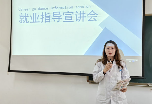 专硕、住培宣讲结束后,学工办副主任才艳雪讲解了学生毕业后就业的多样性选择,分析了当前的就业形式,嘱咐学生一定要准确定位,切不可随波逐流,在最后的冲刺阶段一定要调节好心态,有计划地进行学习,一步一个脚印的稳步提高。此次宣讲大大减少了同学们对未来的盲从性。