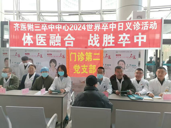 为深入贯彻落实《黑龙江健全新时代志愿服务体系工作措施》的通知要求,积极发挥基层党组织引领和党员先锋模范带头作用,近日,我院门诊第二党支部联合医院卒中中心成员在门诊综合楼一楼大厅开展“体医融合 战胜卒中——2024世界卒中日义诊”主题党日活动。