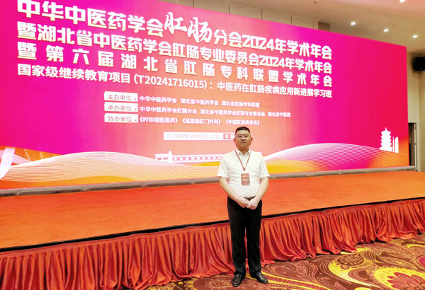 10 月 25 - 27 日,由中华中医药学会主办,中华中医药学会肛肠分会、湖北省中医药学会肛肠专业委员会、湖北省中医院承办的中华中医药学会肛肠分会 2024 年学术年会在湖北省武汉市召开,齐医附属二院肛肠外科主任周扬应邀参会并光荣当选中华中医药学会肛肠分会第八届委员会常务委员。
