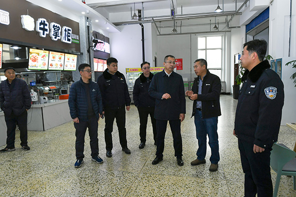 检查过程中,郭尚福详细听取了各岗位工作基本情况、安全管理情况以及设备运行情况汇报,仔细查看了消防设施设备日常巡检以及相关工作记录,并提出工作要求。他指出,各工作岗位要加强管理,切实做好校园消防设施设备维护和值班人员教育培训;要完善系统,提高重点要害部位监控覆盖面;要提前预警,及时发现和处理各类安全隐患和突发事件;要科学规划,大门入口机动车道、非机动车道和行人通道分流管理;要巩固成效,开展打通消防“生命通道”和燃气安全“回头看”。