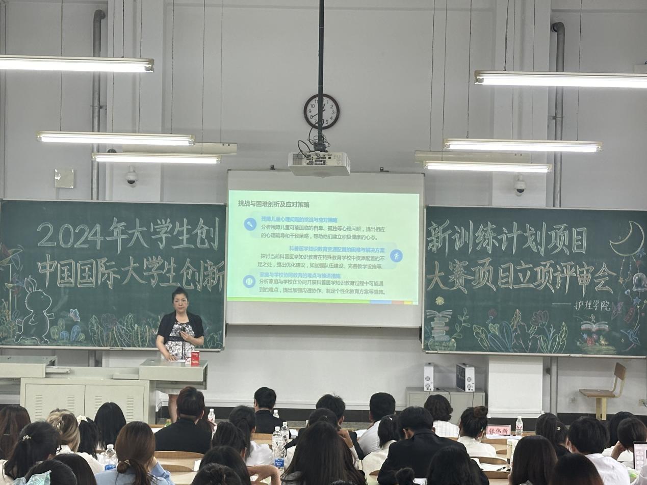 6月20日,护理学院在主楼北区402教室召开2024年大学生创新训练计划项目、中国国际大学生创新大赛项目立项评审会。护理学院院长高音、党总支副书记付桂华、学生工作办公室主任王坤、正处级辅导员逄丽红、办公室主任张伟新担任本次评审会评委,各项目组成员及指导教师参加会议。