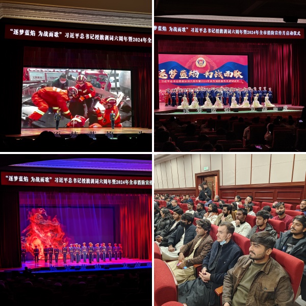 为增强留学生消防安全意识,提升自救能力,11月8日,国际教育学院联合保卫处,组织留学生现场观看了齐齐哈尔市消防宣传月启动仪式。