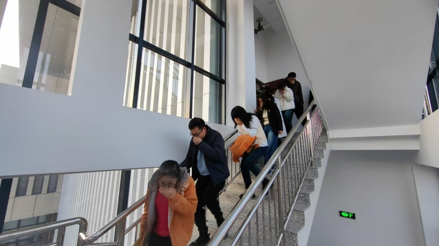 培训结束后,随着刘科长指令下达,病理学院师生分批次按逃生路线开展消防逃生演练,牢记“弯腰靠墙、掩住口鼻、快速有序”十二字口诀,有序逃离至指定集合地点。