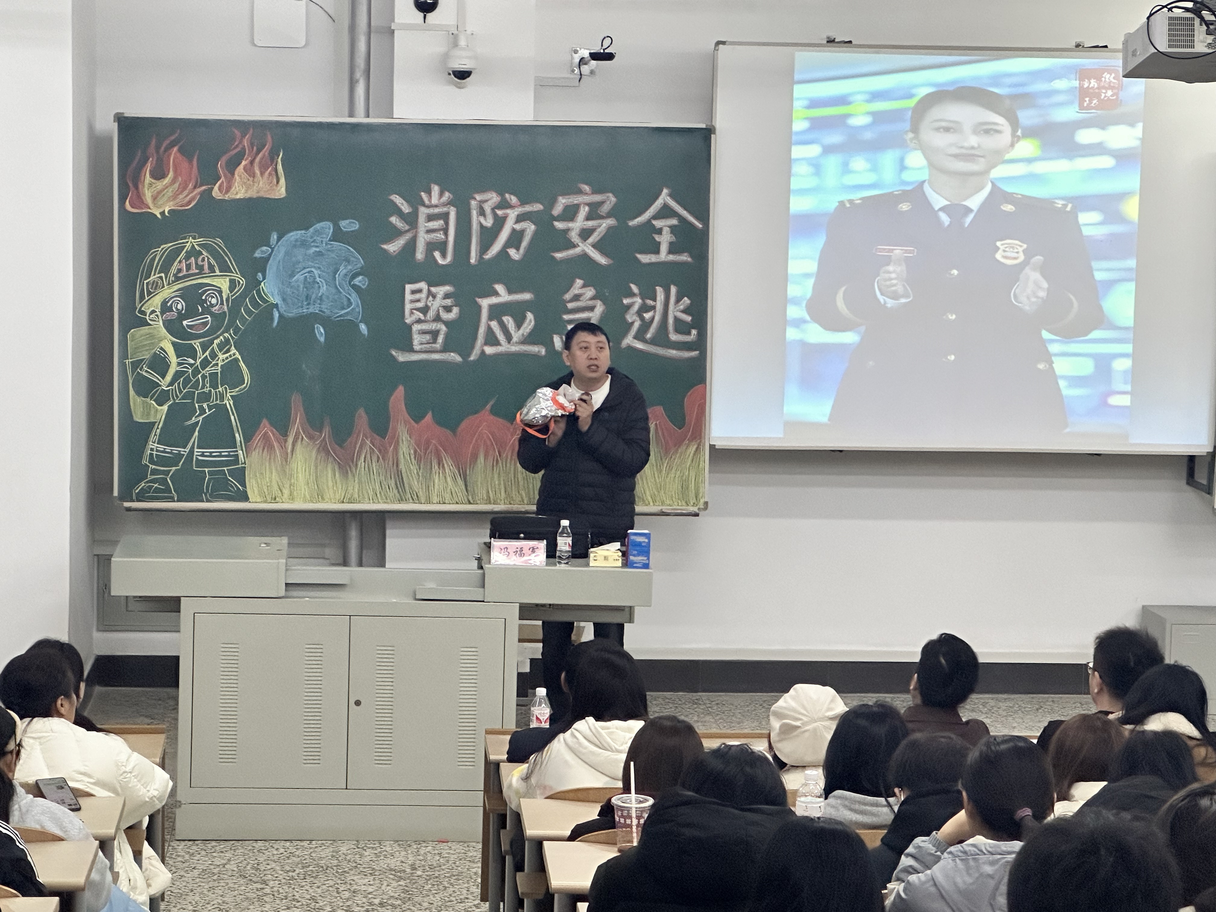 讲座中,冯福军教官带领师生观看了近年来发生的各种典型火灾事故报道及影像资料,向大家展示了火灾事故带来的严重危害。同时,他针对火灾特点、常见火灾隐患、火灾预防措施、初期火灾扑救方法及火场逃生自救技巧等进行了详细说明,并向大家示范了如何正确使用灭火器、过滤式呼吸器等消防器材,使师生对消防安全知识有了更直观的认识,让大家受益匪浅。