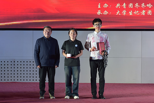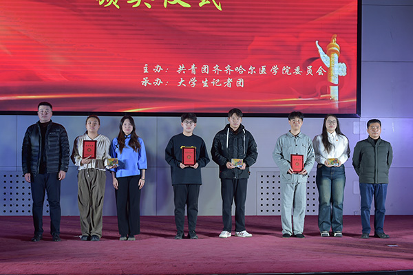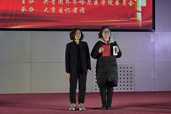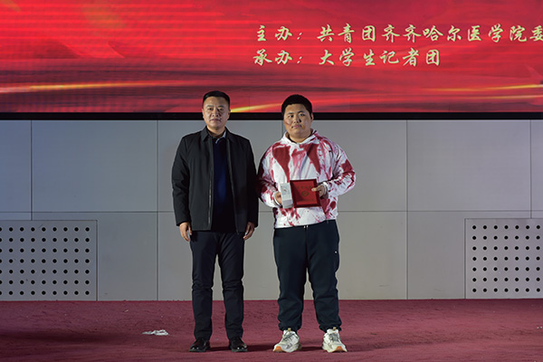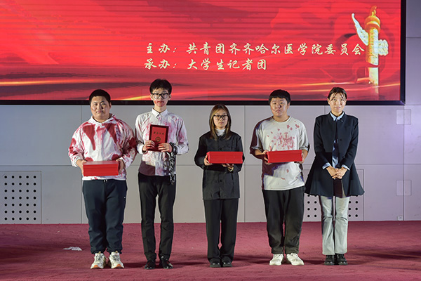 经过各位评委现场打分,最终,学生社团校园网络电视台表演的以歌颂齐齐哈尔英雄人物为主题的《英勇不屈金剑啸》荣获一等奖;精神卫生学院团总支选送的以八女投江为主题的微团课《落红》和学生社团校园网络电视台、白衣勇士先锋队表演的《梦回长征路》,荣获二等奖;基础医学院团委选送的根据赵尚志英雄事迹改编的以遗体捐献为主题的《传承!跨越时间的对话》、医学技术学院团委选送的《青春之声》、《赤色》,荣获三等奖。同时,《青春之声》作品编剧、医学技术学院学生王琛荣获最佳编剧奖,《英勇不屈金剑啸》剧组导演、校园网络电视台学生干部张楠荣获最佳导演奖,《英勇不屈金剑啸》男主角金剑啸的扮演者程文博荣获最佳男主角奖,口腔医学院团总支选送的作品《白山黑水民族魂——赵一曼》中赵一曼的扮演者高佳慧荣获最佳女主角奖。