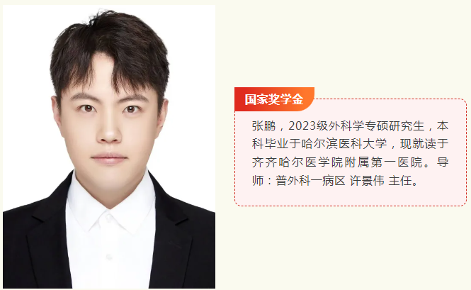 近日,齐齐哈尔医学院附属第一医院2023级外科学专硕研究生张鹏凭借其在思想政治、学业成绩、临床实践、科研能力、竞赛活动以及社会实践等多方面的卓越表现,成功荣获2024年国家奖学金。这一荣誉不仅是对张鹏个人努力的高度肯定,更是对医院人才培养质量的有力证明。
