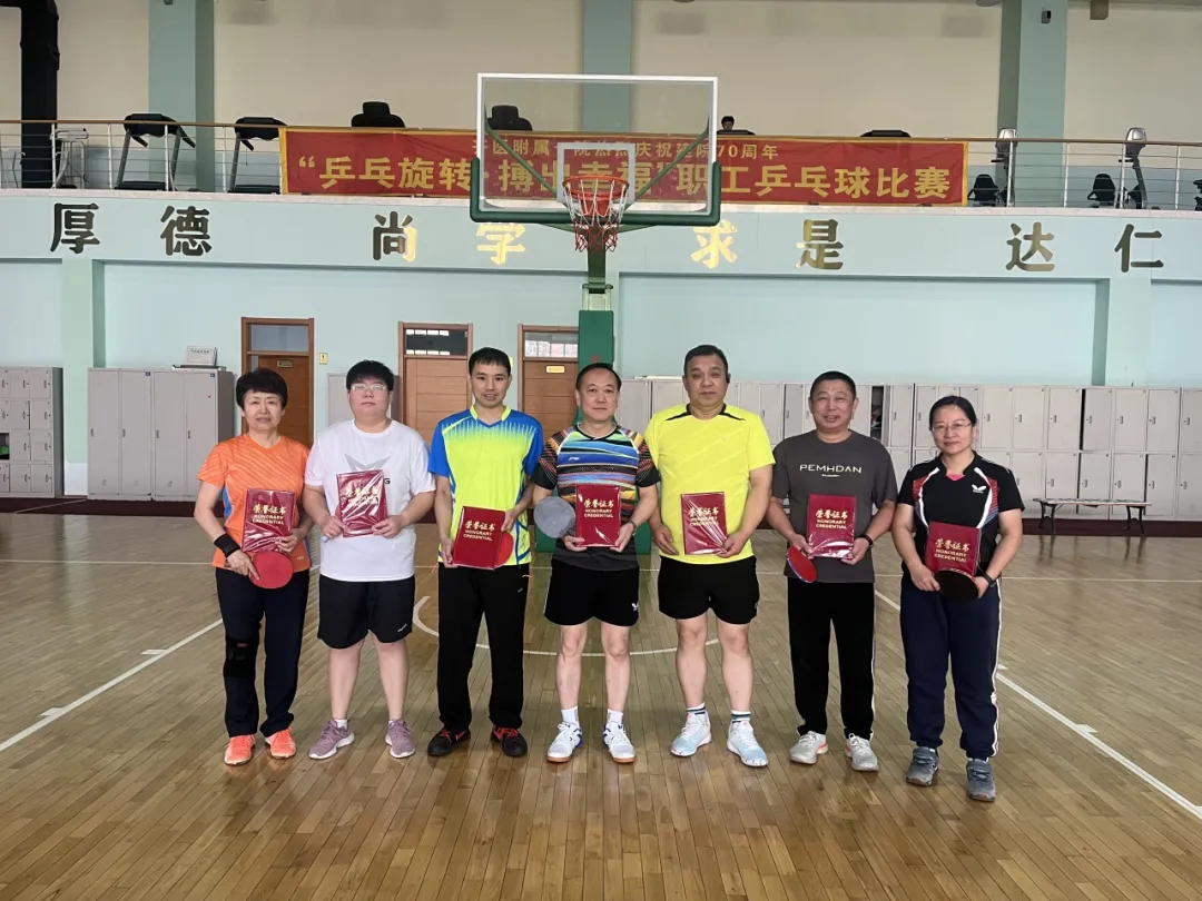 比赛吸引了医院众多职工踊跃参与,现场气氛热烈。比赛中,选手们展现出高超的技艺,他们眼神专注、步伐灵活,每一次挥拍都充满力量,白色的小球在球桌上快速跳动,有的选手擅长凌厉的进攻,扣杀有力,有的则以稳健的防守应对,寻找对手的破绽。经过激烈角逐,后勤代表队获得冠军,外科代表队获得亚军,机关代表队、内科代表队获得季军。