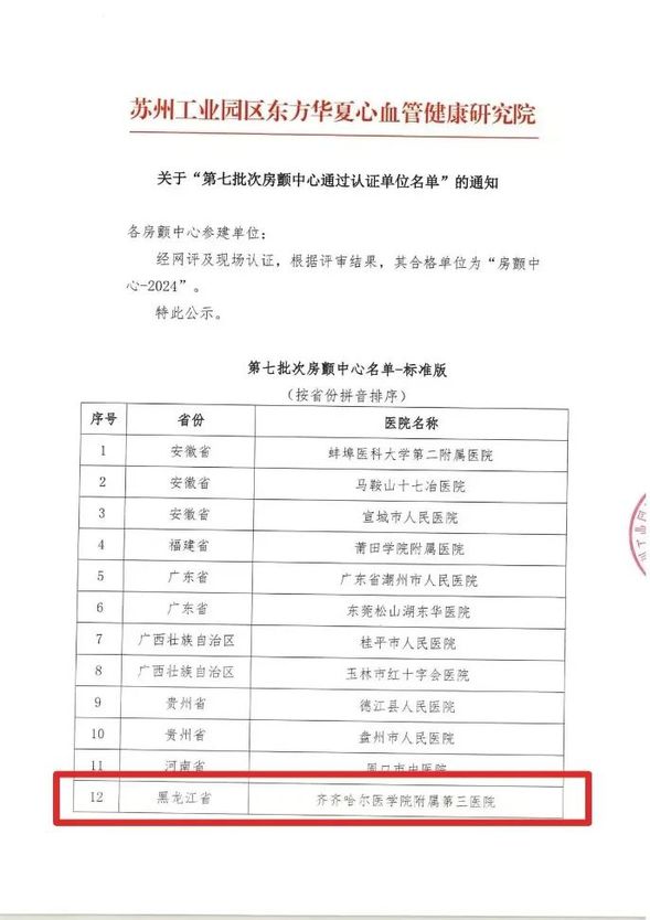 近日,中国心血管健康联盟、中国房颤中心联盟发布“第七批次房颤中心通过认证单位名单”,我院榜上有名,顺利通过了国家级“中国房颤中心(标准版)”认证。