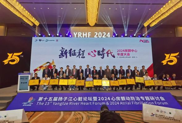 2024年11月16日,在武汉召开的2024年“第十五届扬子江心脏论坛暨2024心房颤动防治专题研讨会”上,中国房颤中心总部向各通过认证单位、示范基地进行了授牌仪式。我院副院长杨钰作为代表接受了“中国房颤中心(标准版)”的授牌。