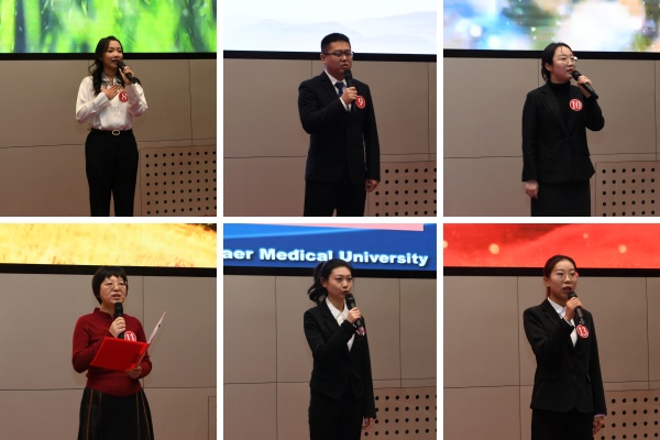 经过2个多小时的激烈角逐,基础医学院许磊、药学院杨晶荣获一等奖;附属第二医院倪宏、附属第一医院王丹、医学技术学院李秋月、护理学院曹琳荣获二等奖;附属第三医院崔丹琦、病理学院李威、学院办公室邓璐萱、精神卫生学院王诗淋、后勤管理处张红宇、国际教育学院崔齐和公共卫生学院郭静静荣获三等奖。