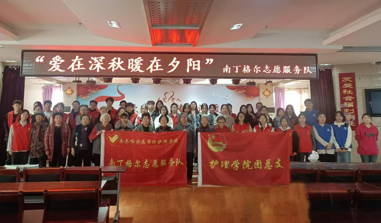 为弘扬中华民族敬老、爱老的传统美德,10月30日下午,护理学院“南丁格尔”志愿服务队与“医学生科普联盟”团队共赴齐齐哈尔市第一社会福利院,开展“爱在深秋,暖在夕阳”活动,为老人们送去关爱。