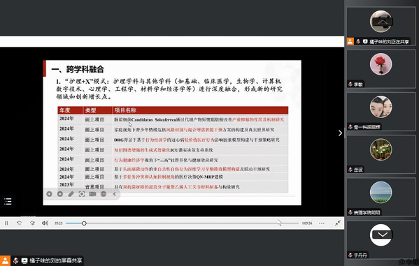 为推进护理学科建设,进一步做好护理学院2025年国家科学基金项目申报工作,11月20日,护理学院特邀请美国护理科学院院士、哈尔滨医科大学护理学院名誉院长周郁秋教授作线上讲学。讲座由护理学院科研科、研究生管理科(合署)科长李敏主持,护理学院全体专兼职教师、研究生导师、2023级和2024级硕士研究生以及感兴趣的本科生、齐齐哈尔工程学院护理教师等近百人参加学习。