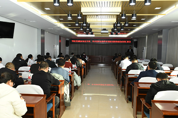 会上,国家级和省级临床重点专科、学院临床重点专科、学术型科室和学术型医生代表围绕基本建设情况、重点工作开展、成果奖励取得、今后工作思路,分别从亚专科发展、人才队伍建设、医疗技术提升、服务能力提高、专科辐射发挥、教育教学改革、科研成果奖励、荣誉称号获得、下一步工作计划等方面分阶段现场汇报。附属第一、第二、第三医院副院长刘增良、刘波、杨钰分别对汇报成果和建设成效进行了深入细致的点评,给予创新和建设性的意见。