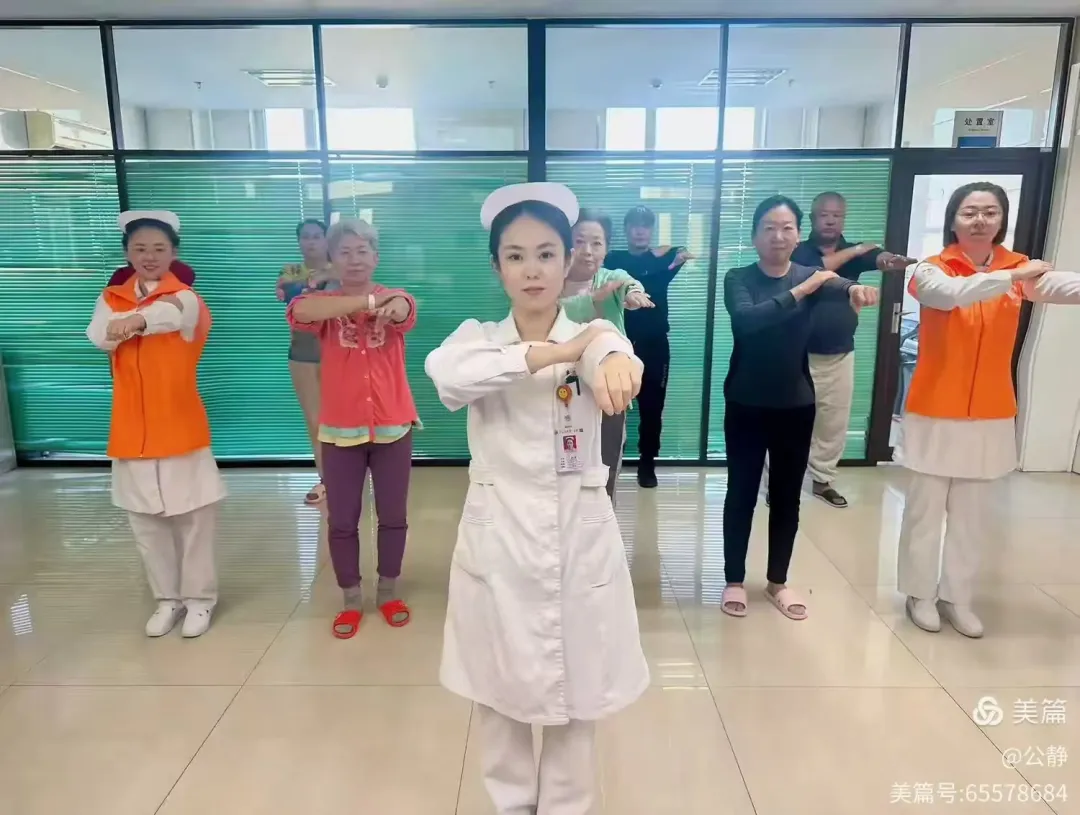 一位参与活动的老年患者激动地说:“年纪大了,心脏总是不太好,这个康复操让我看到了改善的希望,还学到了很多有用的知识,真是太感谢这些护士们了。”