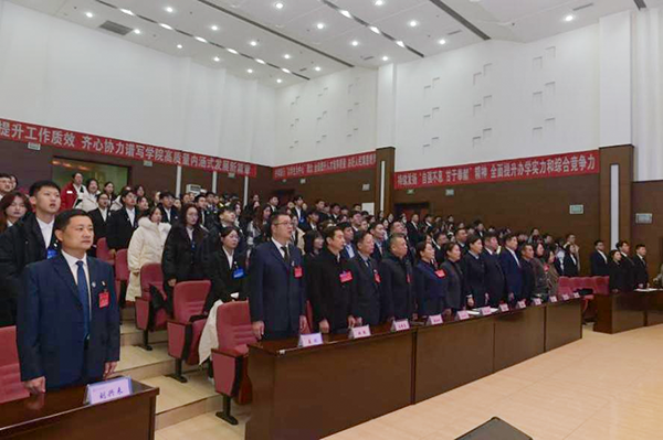 迟沫涵代表学院党委对大会的召开表示热烈祝贺,向支持学院团学工作的兄弟高校表示诚挚感谢,并通过全体学生代表向全院学生致以亲切问候。她指出,此次会议是在全院师生深入学习贯彻党的二十届三中全会精神和全国教育大会精神,在学院处在加快建设高水平特色应用型本科示范高校和创建医科大学的关键时期召开的一次十分重要的大会,背景不同,意义重大。她提出三点期望与要求同参会人员共勉。一是希望同学们胸怀强国之志,在兑现“强国有我”的承诺中擦亮青春底色;二是希望同学们笃行不怠,在勤学苦练和不懈奋斗中书写青春华章;三是希望同学们内外兼修,在知行合一的理念下实现德智体美劳全面发展。她希望广大齐医学子继续保持谦虚谨慎的工作作风和挺膺担当的奋斗姿态,始终保持昂扬向上的朝气、一往无前的锐气、敢为天下先的志气,成为心中有爱、肩上有责、身上有光的优秀青年,努力创造无愧于党、无愧于人民、无愧于时代的光辉业绩!