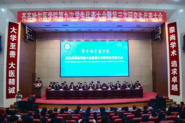 11月24日,齐齐哈尔医学院第九次学生代表大会暨第三次研究生代表大会在图书行政楼二楼多功能厅召开。学院党委副书记迟沫涵、团市委副书记李南希参加开幕会并讲话。学院党委常委、宣传统战部部长张宝林、团委书记刘柏人、研究生院副院长卢长方,以及各二级学院党委(总支)书记、副书记,团委(总支)书记应邀参会。学院学生会秘书长、团委副书记李嘉主持开幕会。学生代表和研究生代表168人参加大会,17名代表因病因事缺席大会。
