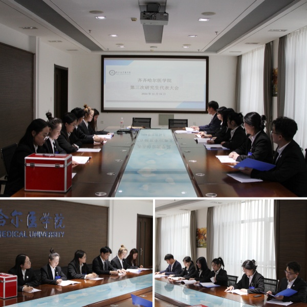 11月24日下午,齐齐哈尔医学院第九次学生代表大会暨第三次研究生代表大会闭幕。闭幕会在科技楼五楼学术报告厅和图书行政楼1801会议室举行。校学生会秘书长、团委副书记李嘉参加学生代表大会闭幕会并致辞,研究生院副院长卢长方参加研究生代表大会闭幕会并致辞。