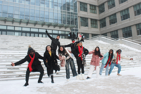 知识讲解后,留学生们满怀期待地奔赴银装素裹的户外,开启欢乐雪趣体验。大家热情高涨地堆雪人、激烈酣畅地打雪仗,创意与活力尽情释放。这边,有留学生精心雕琢出造型可爱的雪人,那边,有留学生在雪仗中默契配合、嬉笑追逐,欢声笑语在雪地间此起彼伏。
