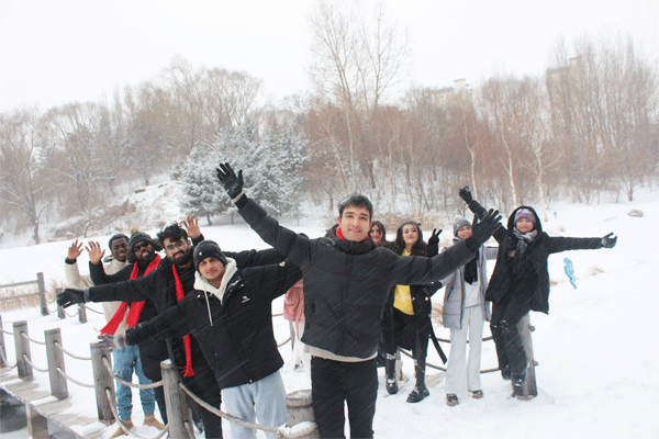 镜头捕捉了一帧帧留学生们的灿烂笑容、灵动身姿与创意雪人作品,每一张雪景照片,都是他们与冬日初遇的珍贵留念。来自加纳的留学生艾瑞克开心分享道:“第一次见到这么厚的雪,本以为会怕冷怕滑不适应,多亏这场活动,不仅学到实用知识,还玩得超级开心,照片更是锦上添花,感觉心里暖乎乎的!”