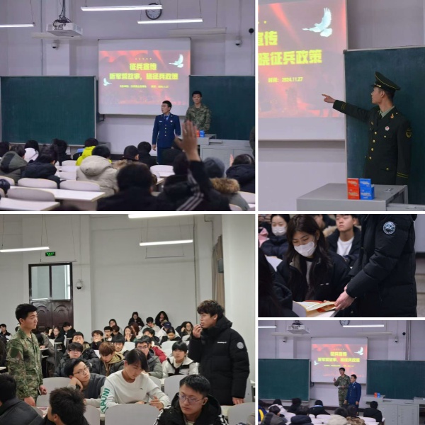 为做好学院2025年春季大学生征兵工作,充分发挥退役大学生的朋辈宣传教育作用,11月27日下午,学院武装部在教学主楼北区105教室组织开展了“听军营故事,晓征兵政策”征兵宣传活动。各二级学院以应届毕业生为主的学生代表200余人参加了活动。